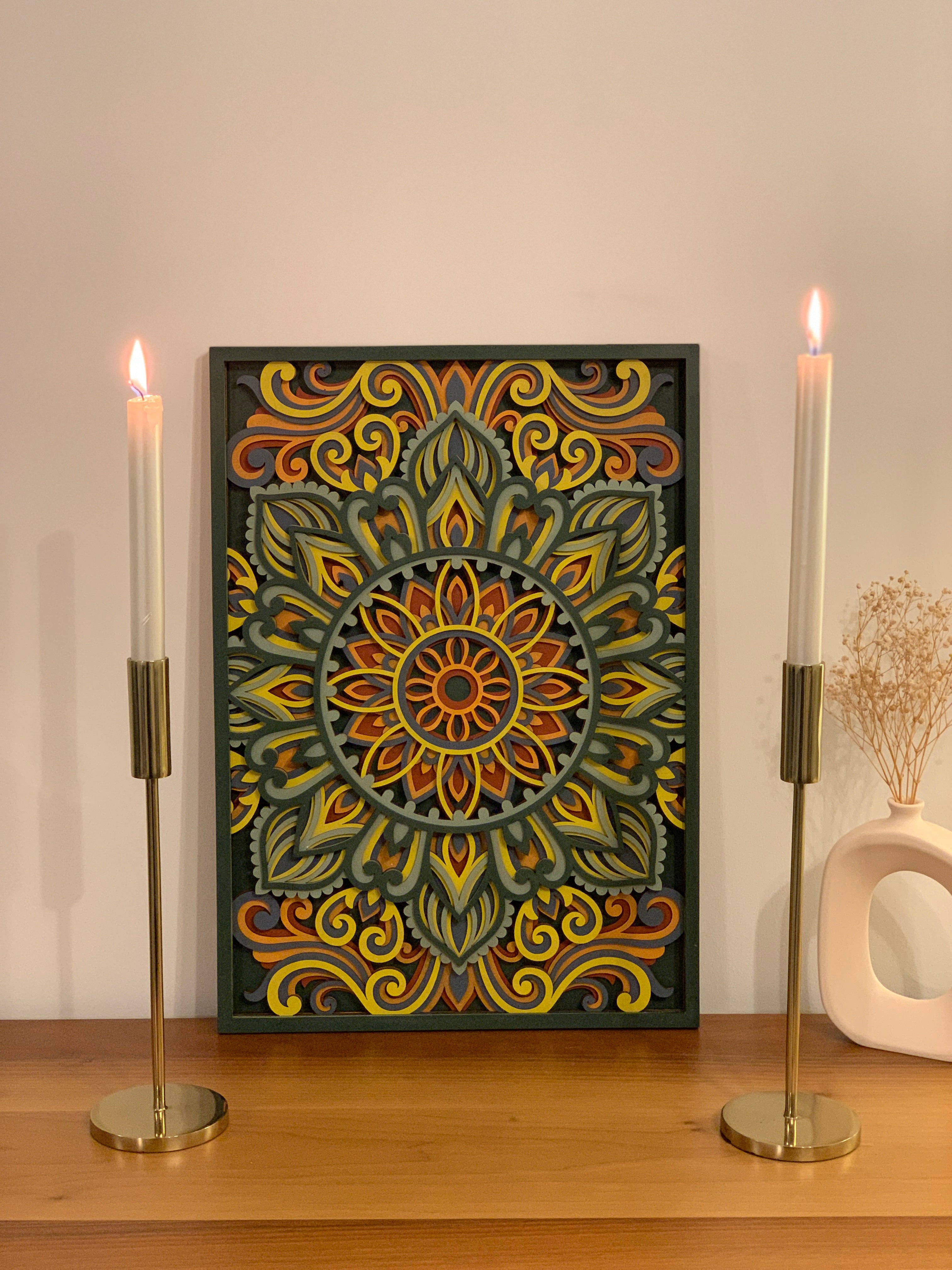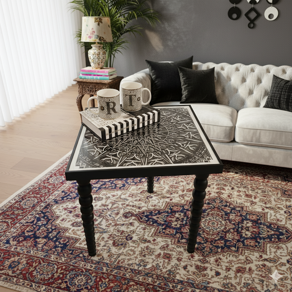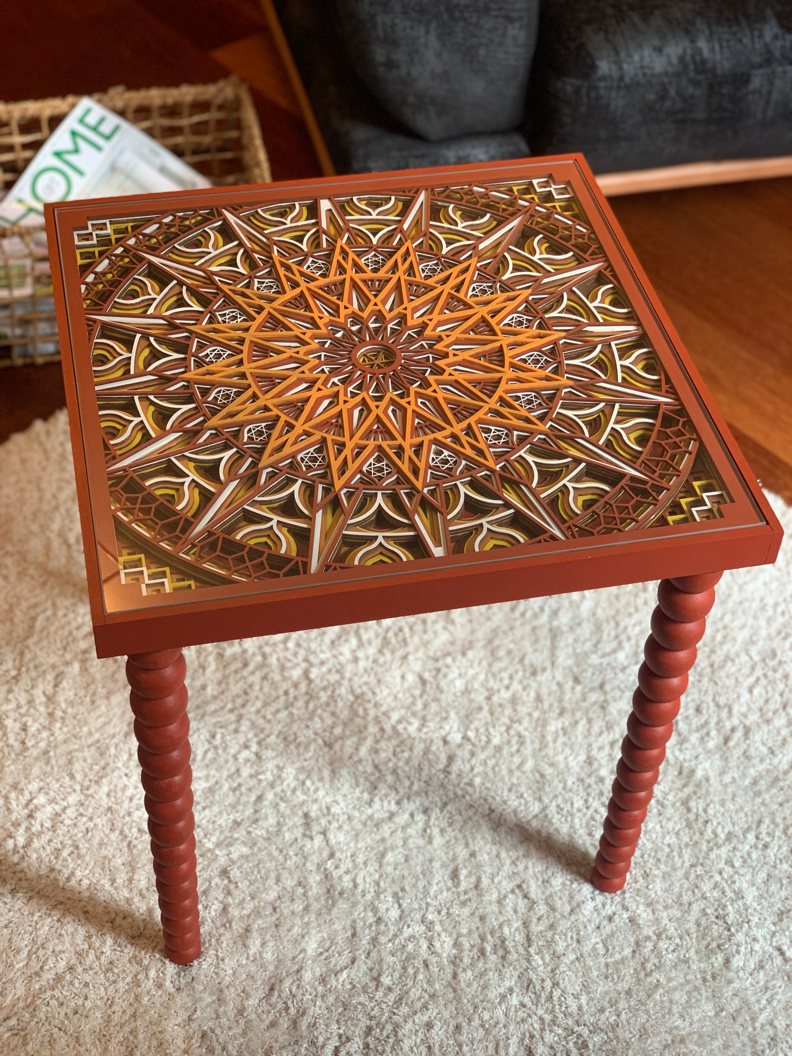 El Yapımı 3D Mandala Yan Sehpa 48×50 cm – Modern Dekoratif Sehpa