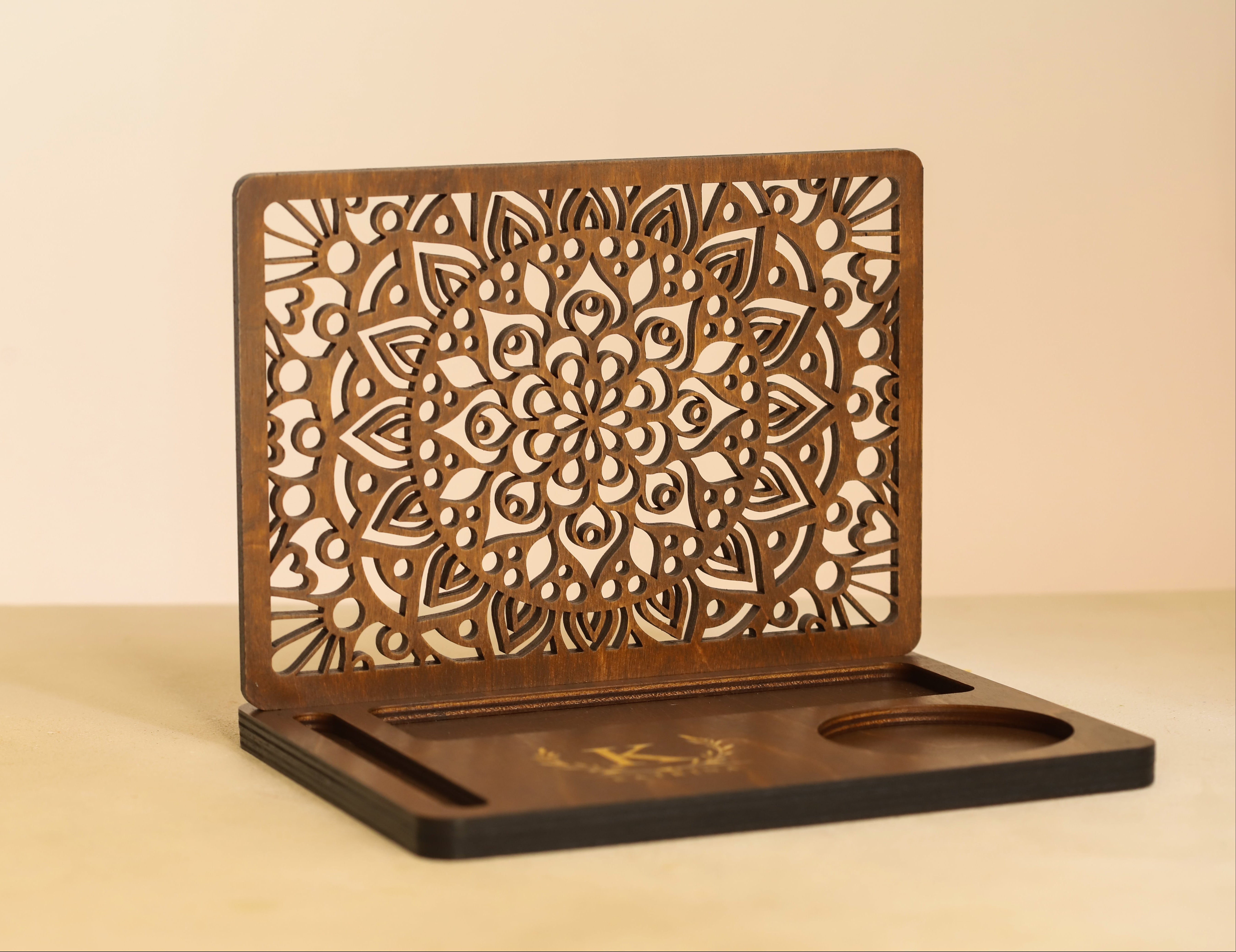 Kişiselleştirilebilir Ahşap Masaüstü Düzenleyici | Kitap Ayracı & Bardak Altlıklı Organizer