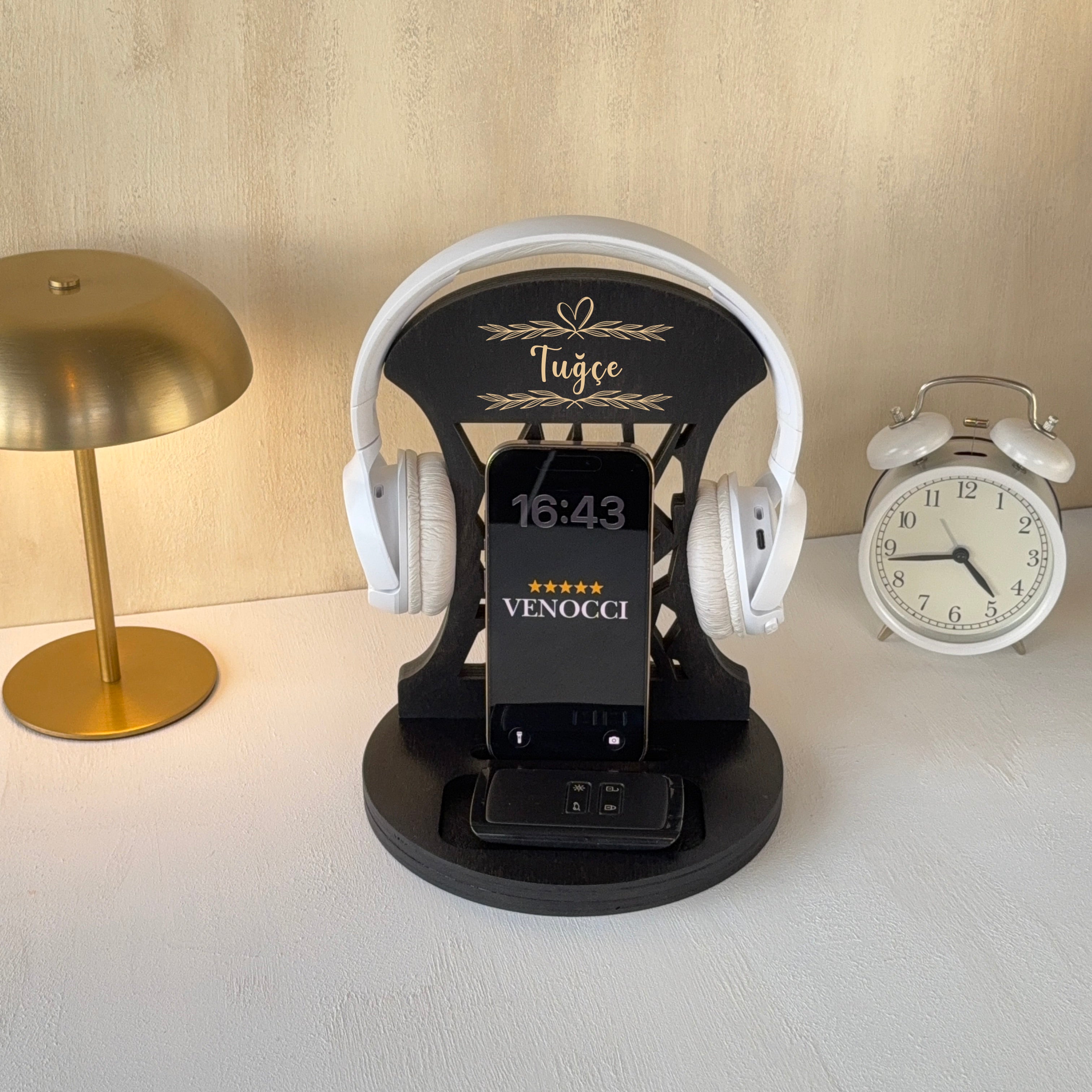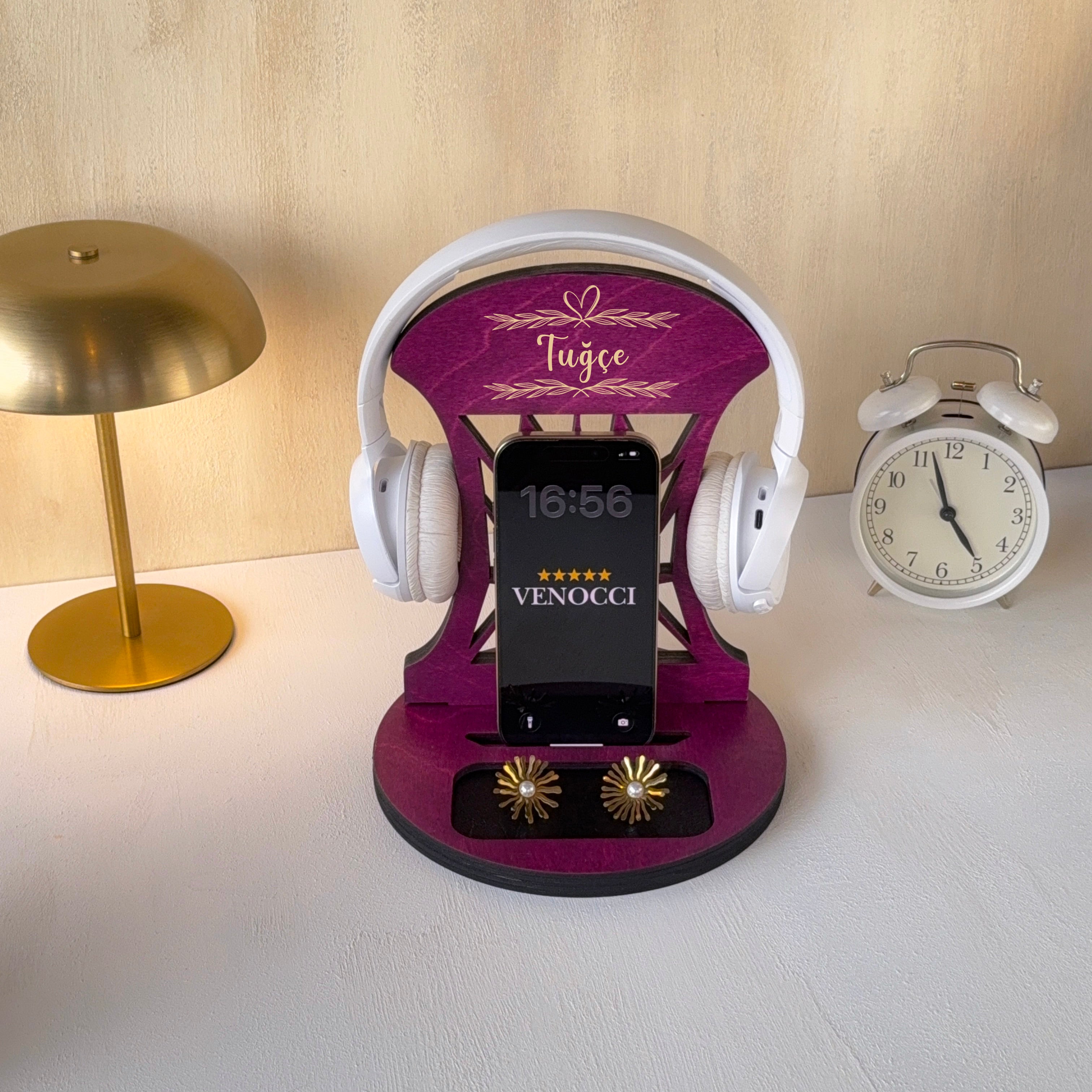 Kişiselleştirilebilir Ahşap Kulaklık ve Telefon Standı