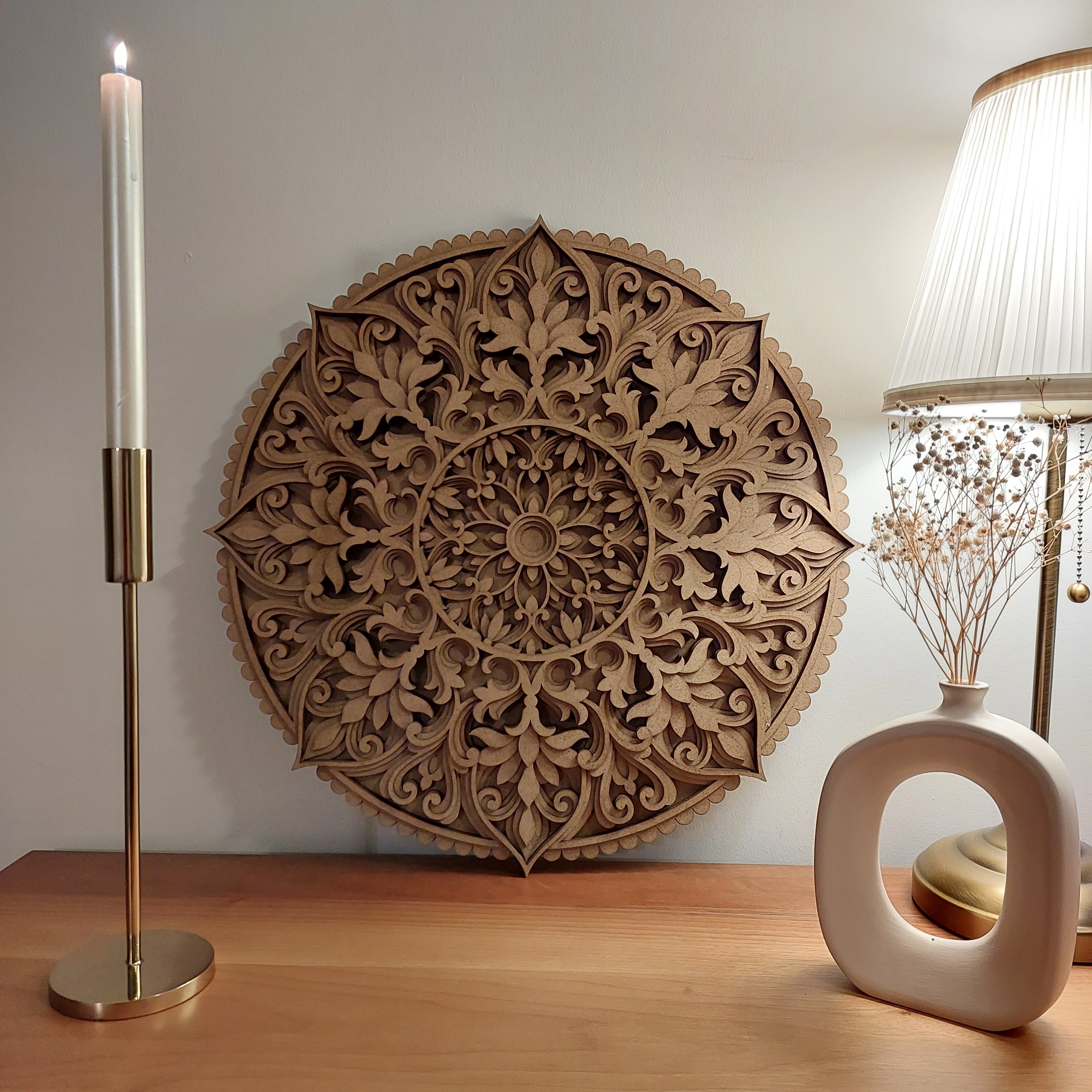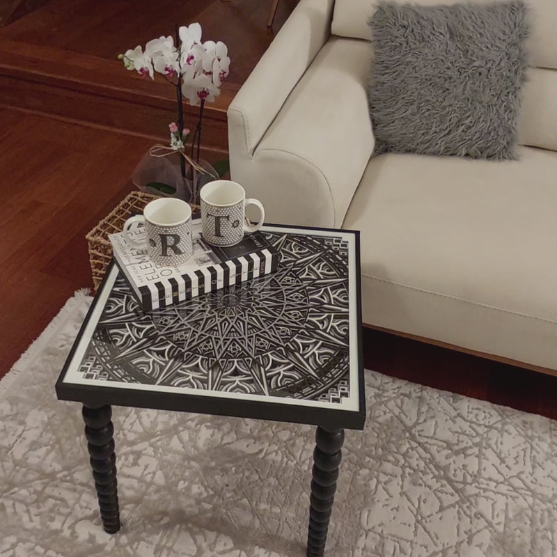 El Yapımı 3D Mandala Yan Sehpa 48×50 cm – Modern Dekoratif Sehpa
