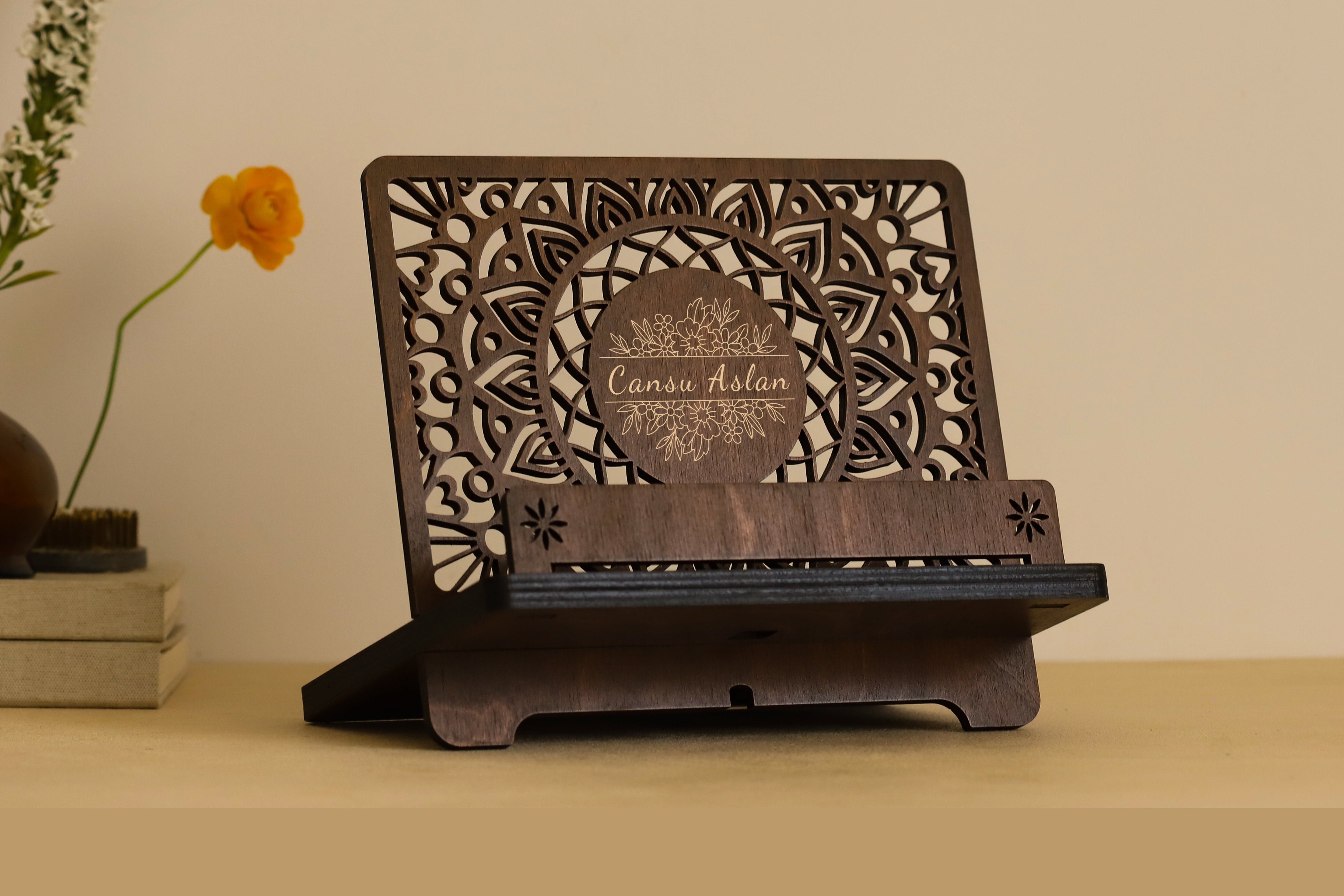 Venocci Kişiye Özel Ahşap Kitap Okuma, Telefon ve Tablet Standı, Masaüstü Düzenleyici