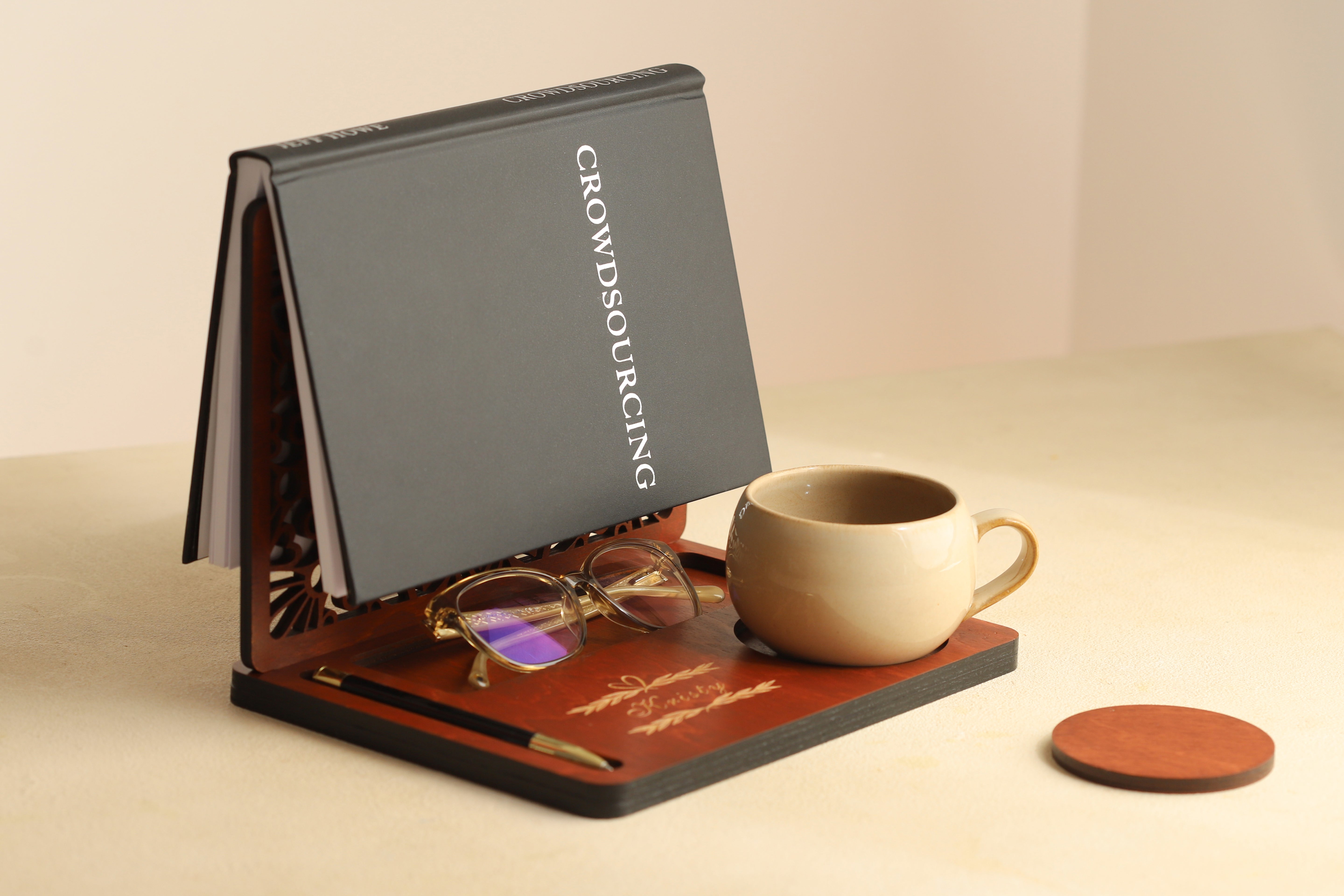 Kişiselleştirilebilir Ahşap Masaüstü Düzenleyici | Kitap Ayracı & Bardak Altlıklı Organizer